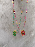 The light-weight rope detailed necklace to either be worn on its own or layered with your most loved gold plated jewels. Available in both pink and green detailed rope.