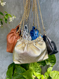 Gabriella is available in Gold, Silver, Cream, Black, Colbalt & Cognac pebbled leather.