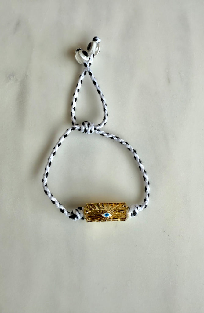 Made from black and white intertwined rope and featuring an evil eye pendant, Grace will keep you protected from negativity, jealousy, and ill intentions, while also inviting positive energy and good fortune.