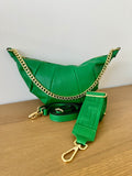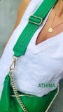 Athina has 3 strap options: Long fabric adjustable crossbody, long leather adjustable crossbody, short gold chain, is Handmade in Italy and made from premium leather.
