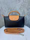 Featuring a leather short handle and also a long leather adjustable strap, Estelle can be utilised as a handbag or go handsfree with a crossbody.